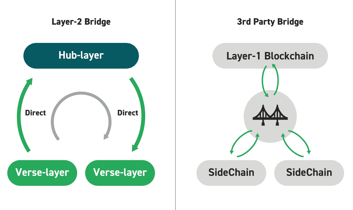 - Decentralized framework with a short module, utilizing a multi-layered structure that ensures safety and scalability while providing dispersibility from the Hub Layer to the L2 layer.